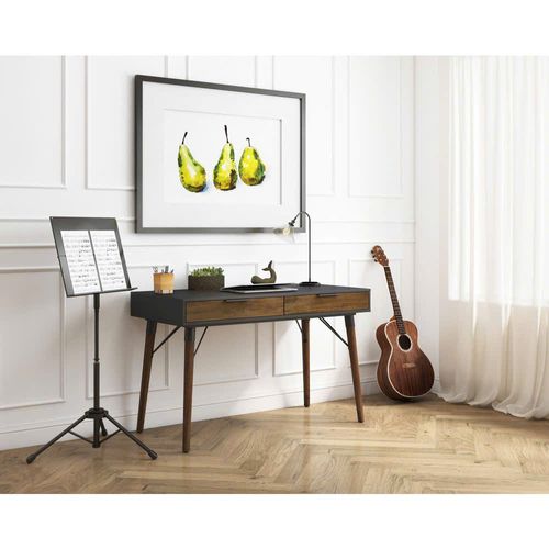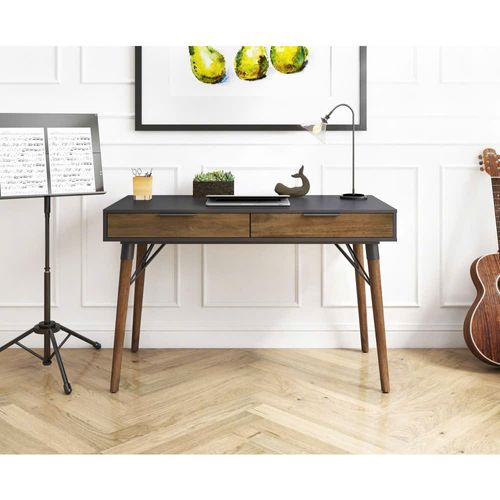 Chân gỗ nguyên khối với điểm nhấn kim loại 2 ngăn kéo Khoảng cách dây điện Bàn nhỏ (rộng 48 inch hoặc nhỏ hơn) - khuyến nghị sử dụng cho không gian nhỏ hoặc chung Yêu cầu lắp ráp