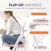 • Tựa Tay Gập Mở (Flip-up Armrest): Dễ dàng nâng lên 90 độ để nhét ghế gọn gàng dưới bàn, tiết kiệm không gian tối đa. Tựa tay được đệm mềm (Soft Padded) cho cảm giác dễ chịu.